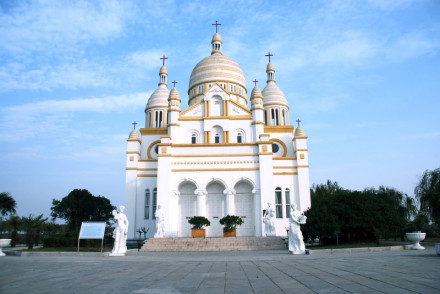 巴黎圣心教堂是典型的折衷主義風格的建筑,建于1875年,1877年竣工。在19世紀中葉至20世紀初,折衷主義建筑是歐美一些國家流行的一種建筑風格,19世紀中期以法國最為典型。這座建筑的穹頂和厚實的墻身呈現(xiàn)了拜占庭建筑的風格,又兼取了羅曼建筑的表現(xiàn)手法。八里河的這座圣心教堂是由阜陽建筑設(shè)計院依據(jù)圖片,按比例建造的。