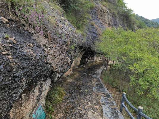 皖西大裂谷集峽谷地貌和洞穴景觀于一體,裂谷長約1500米,寬數(shù)十米、高十余米,谷坡陡峭,多在80度左右,最陡處四座直立,谷深數(shù)十米、高百余米,為一陡立的“V”字形谷,大別山區(qū)所罕見。裂谷是由流水沿斷裂構造長期侵蝕下切所形成的,其西側洞穴也是因流水沿巖石構造軟弱部位選擇性溶蝕所致。
