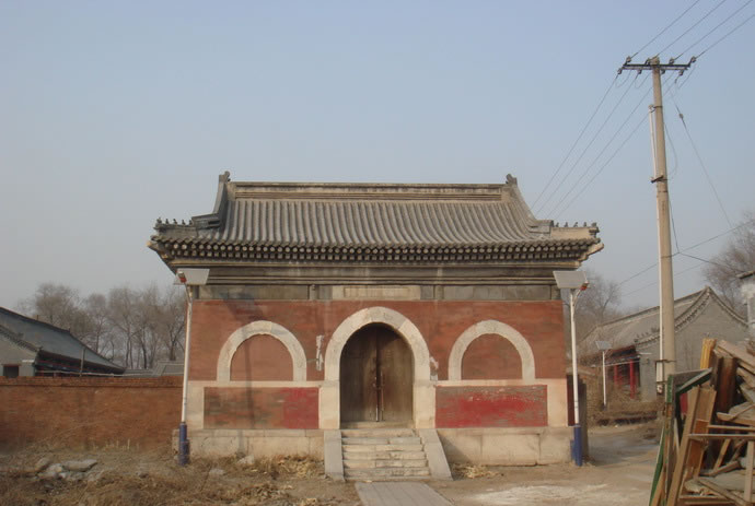 廣智禪寺 廣智禪寺坐西朝東,占地5畝左右,始建于明建文時(shí)期,清代曾修繕。原有兩進(jìn)院落,前低后高,梯狀布局。山門早已無(wú)存,門后為紅墻觀音寶殿,為全部磚石結(jié)構(gòu)的穹窿頂無(wú)梁殿,面闊9.50米,進(jìn)深8.40米(面闊與進(jìn)深相差不大,幾近正方形),據(jù)說(shuō)是北京地區(qū)跨度最大穹窿頂古建筑。四面無(wú)窗,只有正面一個(gè)青石拱券門,廡殿頂灰筒瓦屋面,門上原有石額:“觀音寶殿”,2013年秋被盜走。殿內(nèi)原有漢白玉雕須彌座,現(xiàn)也已無(wú)存。