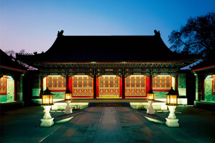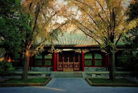 建于同治年間(1862-1874年),是恭親王及其親友看戲的場(chǎng)所。這座戲樓是我國(guó)現(xiàn)存獨(dú)一無(wú)二的全封閉式大戲樓。在清廷檔案中,戲樓均稱為“大戲房”。建筑面積685平方米,其建筑形式采用三卷勾連搭全封閉式結(jié)構(gòu),據(jù)說(shuō)整個(gè)大戲樓雖為磚木結(jié)構(gòu)建筑卻沒有用一根鐵釘。尤其值得一提的是大戲樓的聲音效果。大戲樓為了保證聲音逼真,將戲臺(tái)底下掏空后放置了若干口大缸,巧妙特殊的構(gòu)造增大了共鳴混響空間,使觀眾身處戲樓里的任何位置,都能清晰地聽到不借助任何傳聲工具的演員的演唱。