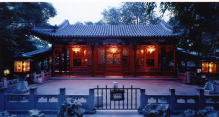 一座宏偉莊重的五開間廳堂,也是萃錦園中路最主要的建筑。其前出抱廈,后帶平臺(tái),兩側(cè)有游廊通向東西兩廡。它在園中蝠池、邀月臺(tái)、水榭、大戲樓等建筑的簇?fù)硐,顯得富貴堂皇,景致優(yōu)美。這里原是主人游園時(shí)吟詩(shī)、作畫的地方,也曾是恭親王奕訢宴請(qǐng)重要賓客的處所。