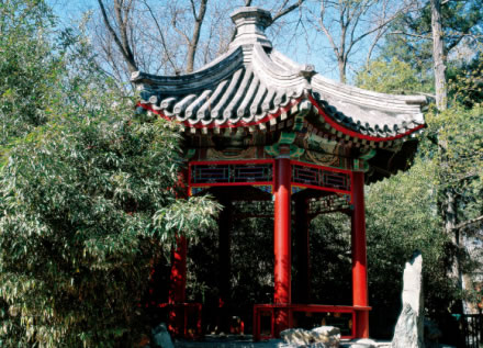 其建筑彩繪上的斑竹,全部是由油工一筆一筆畫上的。該建筑的造型和彩畫被譽(yù)為“古建筑中只此一例”,在花園主山和府墻的蔽護(hù)下,幽靜而秀美,恭親王奕訢經(jīng)常在此和大臣們謀劃軍國(guó)大事。這里也是個(gè)消夏納涼的好地方。后成為恭親王之孫、著名書法家溥儒(溥心畬)的書房。