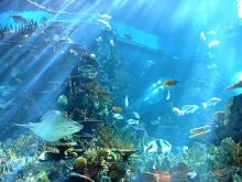主要展品:鞭蝴蝶、長吻鼻魚、多帶蝴蝶、副刺尾魚、海葵、海馬、黃高鰭刺尾魚、藍(lán)綠光鰓、藍(lán)紋蝴蝶、鐮蝴蝶、牛角、六斑刺鲀、珊瑚、石斑魚、石頭魚、鲀科魚、心斑刺尾魚、小丑魚、熊貓龍、醫(yī)生魚。
