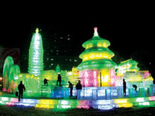 冰燈區(qū)建在山谷中,那里風(fēng)大,溫度要比市內(nèi)低5~8度,前往參觀游玩的朋友們注意保暖。