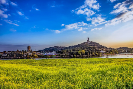 景區(qū)既是宋初著名道教學(xué)者和道教詩人陳摶的故鄉(xiāng),又是“中國最美油菜花海”。油菜花核心區(qū)種植面積達(dá)3萬余畝,其中以油菜為主要背景、小麥為配景種植的中國最大油菜花太極圖案,直徑達(dá)236米;ê7褐,春風(fēng)佛面,清澈的瓊江穿境而過,形成了“十里菜花、黃金鋪地”的壯美景觀。2008開始,已經(jīng)連續(xù)舉辦了十二屆菜花節(jié),2009年,潼南油菜花景區(qū)被評為“中國最美的油菜花!敝,2010年被評為“重慶十大春季旅游目的地”之一。
