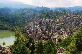 以地表石林為代表的典型的喀斯特地貌景觀十分吸引人。該類景觀表面呈虎皮狀,形成一系列各不相同的觀賞景點(diǎn)。在這里,群峰壁立,奇峰危石,可謂千姿百態(tài),石門、石寨、石柱等,酷似人工堆疊,卻無人工痕 跡;飛禽走獸的石頭,栩栩如生、惟妙惟肖;田園阡陌、炊煙裊裊,清泉碧池、懸崖雪瀑,白鶴青 、 碧空鳥語,清麗若未施粉黛的閨秀楚楚動人。其主要景觀有情朗峰、香爐山、巨扇、地縫一線天、化石 、石鼓、將軍石等數(shù)十處。顯示出萬盛石林景觀的美感與靈性。