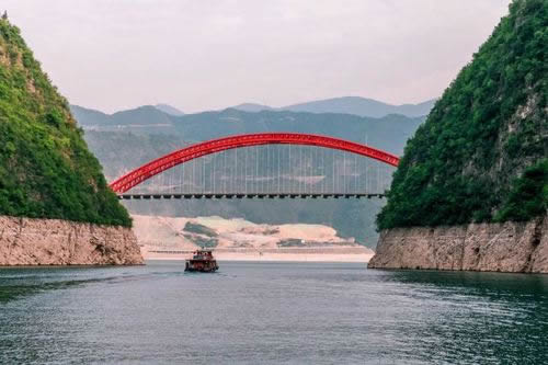 龍門大橋位于小三峽龍門峽峽口,在三峽水庫(kù)最終蓄水后,老龍門大橋主拱圈有三分之二以上部位被淹沒,橋下凈空不能滿足通航要求,因此拆舊橋建新橋。新龍門大橋與巫山長(zhǎng)江公路大橋形成姊妹橋,遙相呼應(yīng)。巫山新龍門大橋位于巫山縣城旁,舊龍門大橋下游90米處的龍門峽峽口。大橋主跨采用240米鋼管混凝土中承式拱橋一跨跨過,路線全長(zhǎng)855.911米。其主要工程量為鋼材2900噸和混凝土1.39立方米。全橋共兩拱肋,每肋13節(jié)段,11道橫撐,采用纜索無支架吊裝成拱。