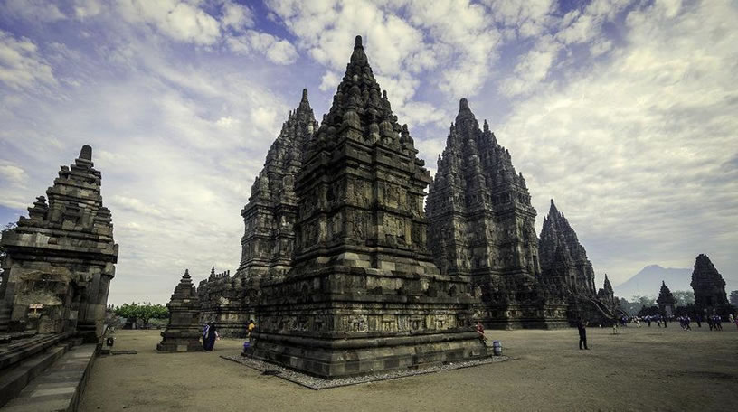 巴蘭班南 巴蘭班南(Prambanan)位于日惹市郊,被譽(yù)為爪哇最美麗的印度教寺廟古跡,亦是印度尼西亞最大最美的印度教寺廟,是記錄印度尼西亞人祖先燦爛文化的載體,與臨近的婆羅浮屠一起被列入聯(lián)合國世界文化遺產(chǎn)。 巴蘭班南寺廟群由240座廟宇組成,大部分已經(jīng)淪為一堆瓦礫,但一些主要的廟宇在經(jīng)歷了天災(zāi)人禍的滄桑變遷后,在人們的努力下得以重建,又煥發(fā)出昔日的風(fēng)采。 巴蘭班南寺廟共有8個圣殿,其中三個主殿分別祭祀著濕婆、毗濕奴和羅摩這三位印度教中的主神。中心院落里有三個主殿。濕婆殿高為46.5米,里面是濕婆的妻子杜爾加的神像,也是最高的神殿。濕婆殿的北側(cè)是維斯奴廟,南側(cè)是婆羅吸摩廟,前面是楠迪廟。在毗濕奴和婆羅吸摩廟的前面是瓦哈諾廟,阿皮特廟位于北側(cè),其南側(cè)與廟宇相接。在主廣場每一個大門前面的東西兩側(cè)有四個克利爾廟;而在主廣場的四個角上均各有一個小廟宇。