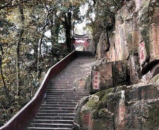 第六亭:“松關(guān)亭”。距“荷亭”有300多級(jí)臺(tái)階,附近有石刻一筆“壽”、 一筆“龍”、一筆“虎”,還有文天祥所書(shū)的“忠、孝、廉、節(jié)”等。第七亭:“更衣亭”。過(guò)“松關(guān)亭”幾十步即是。傳說(shuō)閩王當(dāng)年上山入寺,便在此更衣。有聯(lián)曰:開(kāi)門(mén)曾仰前王節(jié),入寺還更此地衣。登山至此,汗流浹背,而高處生寒,正需更衣、添衣。附近石刻有“毋息半途”、“眼底浮云”、“心路須平”等。