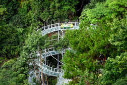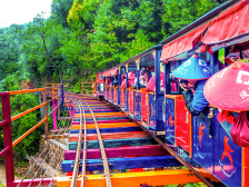 穿梭于蔥郁叢林之間的小火車,全程3公里,最高處離地將近30米。盤旋于峭壁之上,穿百米高崖,鉆萬畝密林。