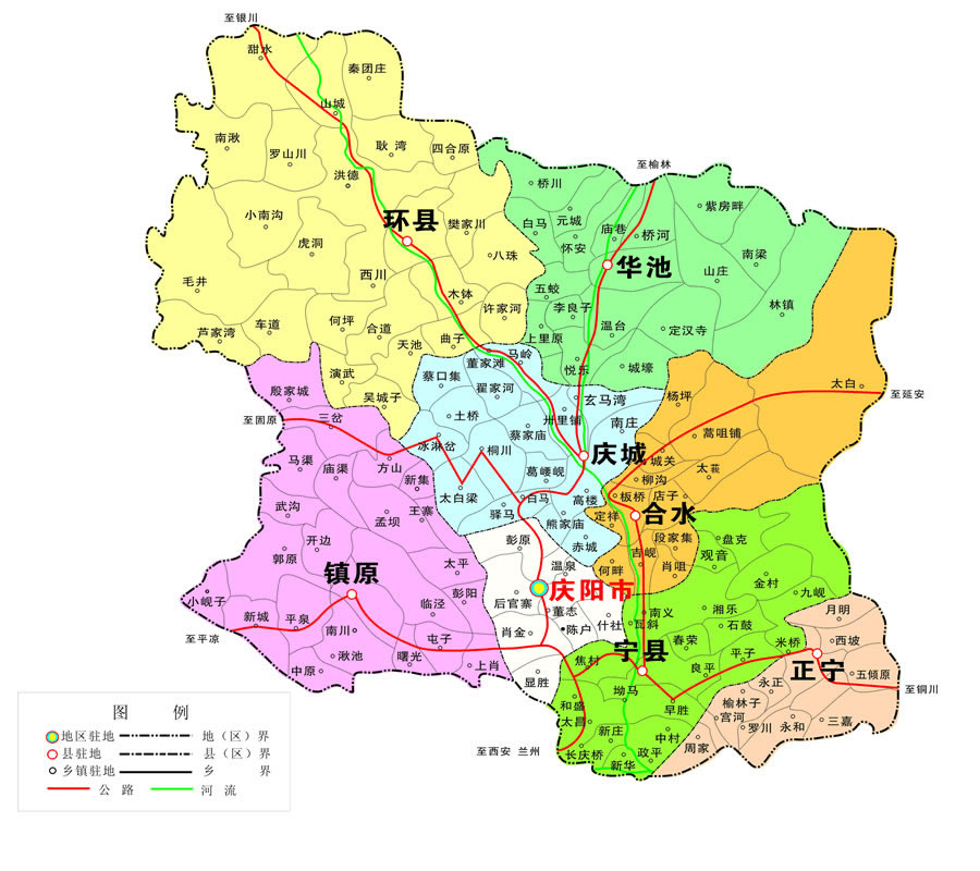 慶陽(yáng)市轄1個(gè)區(qū)、7個(gè)縣: