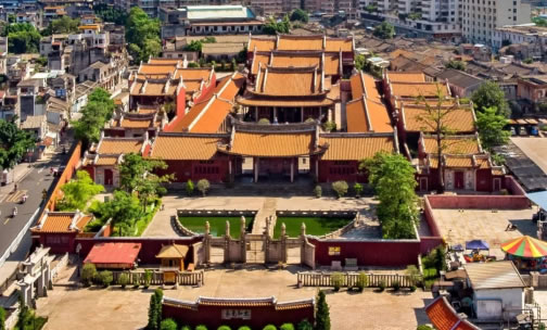 揭陽學(xué)宮又稱“孔廟”,位于榕城區(qū)韓祠路口東側(cè),建于宋紹興十年(1140年)。具有明清古建筑的風(fēng)格和鮮明的潮汕古建筑特色,是嶺南地區(qū)規(guī)模最大、配套建筑最完善、保存最完整的同類歷史建筑組群,有“粵東古建筑明珠”美譽(yù),為中國重點(diǎn)文物保護(hù)單位。