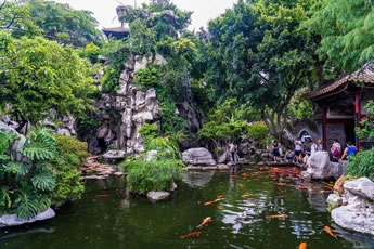 在花木配置方面,園內(nèi)花卉果木逾百種,除了嶺南園林常用的果樹,還栽種了蘇杭園林特有的紫竹、枸骨、紫藤、五針松、金錢松、七瓜楓、羽毛楓等,并從山東等地搜集了龍順棗、龍瓜槐等北京樹種,其中銀杏、沙柳、紫藤、龍眼、水松等古木樹齡已百年有余。