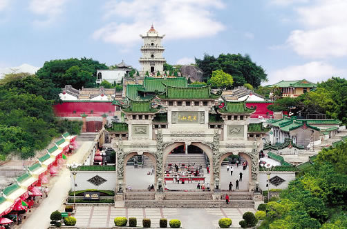 海豐蓮花山度假村(AAAA級旅游景區(qū))位于汕尾市海豐縣城北部7千米處,主峰海拔1337.3米,為粵東沿海第一高峰,狀如一朵盛開的蓮花,故名蓮花山。南麓坡面上,層巒疊嶂,翠綠相間,堆疊而起,層次分明,形成“蓮峰疊翠”的天下奇景。境內云霧繚繞,森林密布,生長著仙人茶、羅漢松、白木香、胭脂木等珍稀植物;飛瀉著玉龍噴須、三井回音、龍?zhí)讹w瀑、七星疊瀑、雙龍瀑、回音瀑等18處瀑布;分布著召貢、埔仔等溫泉及大、小東門、天池、如來盤石等自然景觀,具有雄、奇、險、秀、幽之特色,是廣東省的四大名山之一。明清時期,有高僧在此創(chuàng)建雞鳴寺、云蓮寺、金竹寺等7座古剎,宗教文化發(fā)達,被譽為“蓮花佛國”。歷來有白玉蟾、劉克莊、文天祥、丁日昌等名人在此隱居或經過,寫有贊美的詩篇。近代有周恩來、彭湃、徐向前、古大存等在此開辟和建立革命武裝根據地,留下紅四師師部遺址等。1995年3月,經廣東省林業(yè)廳批準,建立廣東蓮花山森林公園。