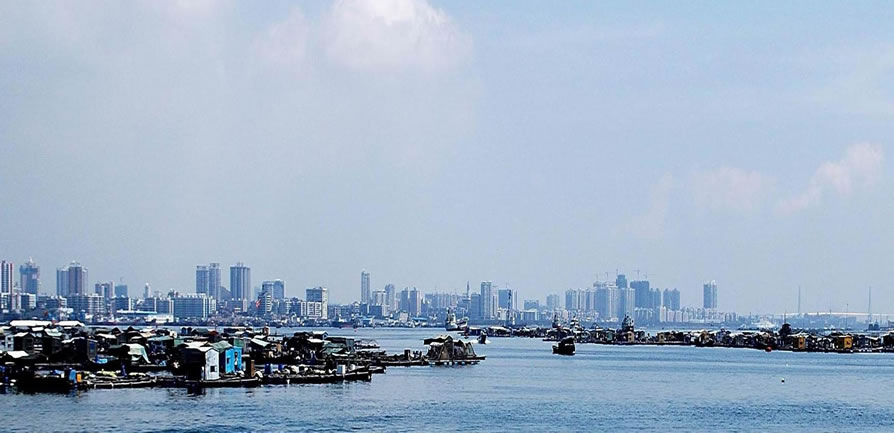 海濱風光:中國大陸最南端極點---徐聞燈樓角,湛江港灣,湛江軍民堤與金沙灣,赤坎金沙灣海濱浴場,湛江海灣大橋,海上城市(船),