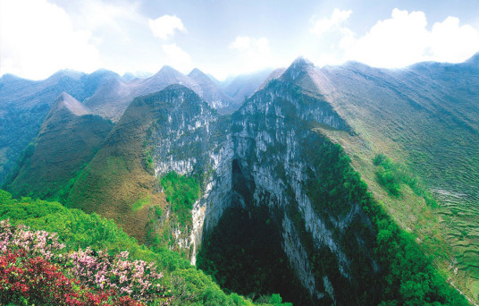 通靈大峽谷:位于靖西縣城東南部32公里的湖潤鎮(zhèn)新靈村,古龍山水源林自然保護(hù)區(qū)的南端,由念八峽、銅靈霞、古勞峽、新靈峽、新橋峽組成,總長(zhǎng)10多公里。念八河從古龍山脈緩蜒而下,依次穿越五個(gè)峽谷,流入湖潤臺(tái)地。每個(gè)峽谷內(nèi)薈萃了舉世罕見的特高瀑布群、洞中瀑布、地下暗河、峽谷溪流、洞穴奇觀、古石壘、古懸葬、原始植被等自然景觀與人文景觀。