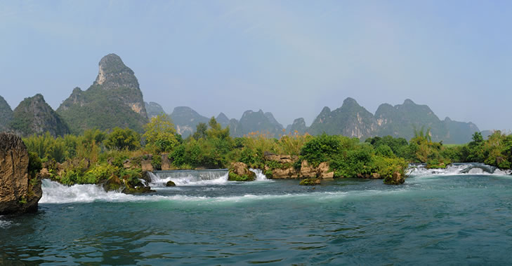 安平景區(qū)位于廣西大新縣雷平鎮(zhèn)安平村,距縣城25公里,距南寧165公里,景區(qū)內(nèi)山川秀麗,河流清澈,屬于典型的喀斯特地貌景觀。全長45公里的黑水河貫穿全境,隸屬左江支流,河的兩岸群山綿延,奇峰聳峙,層巒疊翠,青竹秀水,交相輝映,景色極為秀美。坐在游船上,不僅可以看到翠竹、綠樹叢中的村落,欣賞天水一色的田園風光,還可以看到河岸邊的奇石、水中的島嶼,更令人興奮的是還可以觀賞到從上游一涌而下的大小瀑布和激流,感受大自然給予的恩惠。