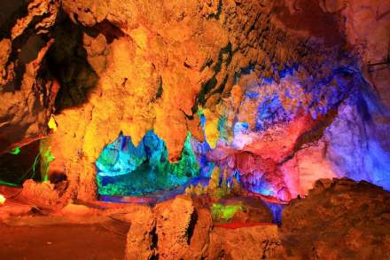 銀子巖溶洞是典型的喀斯特地貌,貫穿十二座山峰,屬層樓式溶洞,洞內(nèi)匯集了不同地質(zhì)年代發(fā)育生長的鐘乳石,晶瑩剔透,潔白無瑕,宛如夜空的銀河傾斜而下,閃爍出像銀子、似鉆石的光芒,所以稱為“銀子巖”。洞內(nèi)特色景點數(shù)十處,最為著名的景觀有三絕:雪山飛瀑、音樂石屏、瑤池仙境;三寶:佛祖論經(jīng)、混元珍珠傘、獨柱擎天。大自然的鬼斧神工在這里被展示得淋漓盡致,故被譽為“世界溶洞奇觀”。