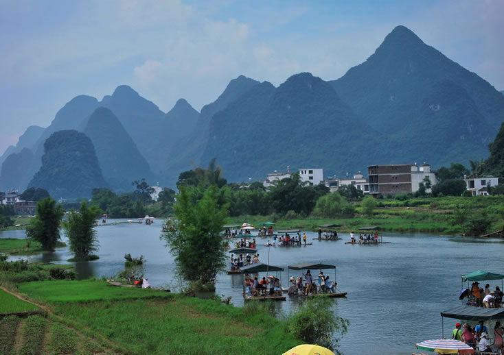 陽(yáng)朔楊堤漓江景區(qū)主要以坐竹筏游漓江為主,從楊堤漂到興坪,途經(jīng)鯉魚(yú)掛壁、童子拜觀(guān)音、神筆峰、浪石風(fēng)光、雄獅爬五指山、老人守蘋(píng)蘋(píng)果、八仙過(guò)江、九馬畫(huà)山、終點(diǎn)20元人民幣背景圖案處。