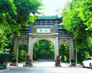 桂平西山新山門典雅大氣,別具一格,與山連體,與名流揚,爭相輝映。新山門名曰《南天一閬》,由桂平籍當代著名書法家蒙漢良題寫 ,兩邊對聯(lián)是意味深長、文辭雋永之90字長聯(lián),乃民國孔文軒、鄒魯兩人合作。20世紀20年代初,孫中山從粵赴邕演講,路經(jīng)桂平上西山,宴席上,孔文軒出一上聯(lián)云:“蒼梧偏東,邕寧偏南,桂林偏北,惟此地前列平原,后橫峻嶺,左黔右郁,匯交廿四江河,靈氣集中樞,人挺英才天設險;”并戲言若眾人應答不出下聯(lián)則不得開宴。孫中山的秘書鄒魯略經(jīng)思考,從容應答出下聯(lián):“洗石有庵,乳泉有亭,吏隱有洞,最妙處茶稱老樹,柳紀半青,文閣慈巖,掩映十八羅漢,游蹤來絕頂,眼低層塔足凌云。”此上聯(lián)寫西山形勝,下聯(lián)寫西山具體勝跡。下聯(lián)以纖柔對上聯(lián)的雄渾,為西山增添不少雅韻,令世人爭相吟誦不已!