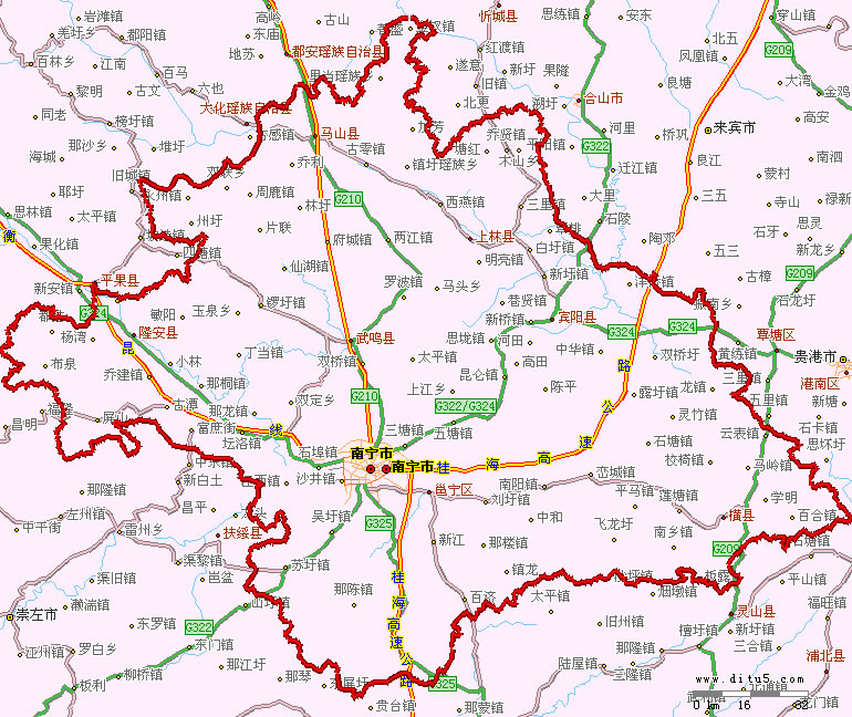 南寧距北海、欽州、防城港市分別只有204公里、104公里、172公里,距中越邊境僅180多公里。境內有209國道(呼北線)、210國道(包南線)、322國道(衡友線)、324國道(福昆線)、325國道(廣南線)以及渝湛線(重慶——貴陽——南寧——湛江)和衡昆線(衡陽——南寧——昆明)等8條國道在此匯集,可通達廣西各市、縣和全國各主要城市、地區(qū)。