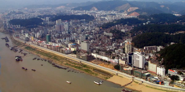 梧州市位于珠江流域西江水系中下游—潯江(西江上游)與桂江交匯處。西江水系梧州市以上流域,集水面積32.97萬平方千米。流域上游西面為云貴高原,北面有大苗山、貓兒山、越城嶺,南面是十萬大山、六萬大山、大容山等。西江水系匯集江河溪流700多條和廣西壯族自治區(qū)85%以上水量流經(jīng)梧州市。整個(gè)流域西北高,東南低,流域內(nèi)水流匯集西江注入珠江,流域內(nèi)河流密度較大,廣西壯族自治區(qū)境內(nèi)集水面積50平方千米以上河流784條,平均河流密度為每平方千米0.14千米。全市流域面積大于10平方千米河流有420條。其中,流域面積10平方千米~50平方千米河流有283條;流域面積50平方千米~100平方千米河流有65條;流域面積100平方千米~1000平方千米河流有55條;流域面積1000平方千米~1萬平方千米河流有13條;流域面積大于1萬平方千米河流有4條。中間低而多河流,潯江、桂江相匯成西江,集廣西壯族自治區(qū)眾多河流水量,河流水面積占總面積9.28%。梧州市流域面積大于10平方千米河流有7條,其中100平方千米~1000平方千米河流有1條。黔江在桂平市三角咀郁江匯入處以下河段稱潯江,流經(jīng)桂平市和平南縣、藤縣、蒼梧縣,至梧州市區(qū)桂江匯入處止。干流長(zhǎng)172千米,蒼梧縣及梧州市區(qū)境內(nèi)18千米,河段平均坡降0.0097%。區(qū)間流域面積20236平方千米。其中,廣東省境內(nèi)1594平方千米,在廣西壯族自治區(qū)境內(nèi)18642平方千米。