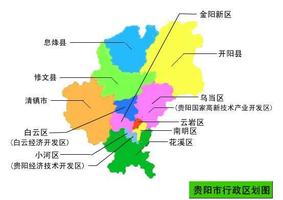 貴陽市轄6個區(qū)、3個縣、代管1個縣級市: