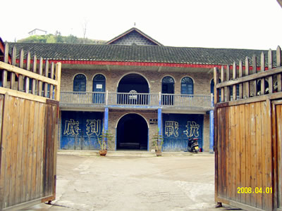 “和平村”是國民黨政府軍政部第二日軍俘虜收容所,設(shè)在鎮(zhèn)遠衛(wèi)城十字街東側(cè)五云山下,原鎮(zhèn)遠總兵署中營衙門。前有巷道北通衛(wèi)城上北門,面臨濞陽河,后依五云山,有衛(wèi)城南門通金堡苗鄉(xiāng),方圓面積50000平方米。仍保留著當年“和平村”半圓拱形大門和高高的圍墻,并恢復(fù)了當年的“新生班”、“研究班”、“訓(xùn)練班”、“啞子室”、“職員室”。