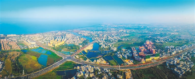 公路 美蘭區(qū)有區(qū)屬橋梁32座,境內(nèi)有?—文昌高速公路、海口—榆林(東)公路(國(guó)道223線)、省道靈文嘉線,全區(qū)鎮(zhèn)級(jí)及以下公路458條,總長(zhǎng)761千米。城區(qū)道路形成以瓊山大道、白龍路—新埠大道、和平大道—和平北(南)路、人民大道、甸昆路5條南北向主干道,以國(guó)興大道—白駒大道至海文高速公路、海府路—海秀東路、長(zhǎng)提路—賓江路、海甸五東中西路4條東西向主干道的“五縱四橫”的道路網(wǎng)絡(luò),道路貫通全市,連接周邊市縣。