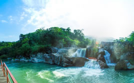夢幻谷是熱帶雨林中溝谷瀑布的代表,在縱深1.2千米、落差200米的熱帶雨林溝谷內(nèi),有迎賓瀑布、天門瀑布、連恩瀑布三個水位、落差不同的瀑布,與樹、石、溪等構(gòu)成一個“夢幻”地帶,在夢幻谷棧道上可觀瀑布、聽鳥叫蟬鳴。