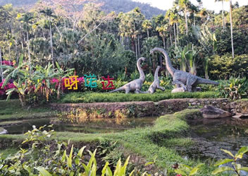 蘭花溪將中國傳統(tǒng)造園技巧與熱帶雨林文化進行結(jié)合,附近有花草、茅草屋、徒步小道,長藤下分布有樹桌椅。