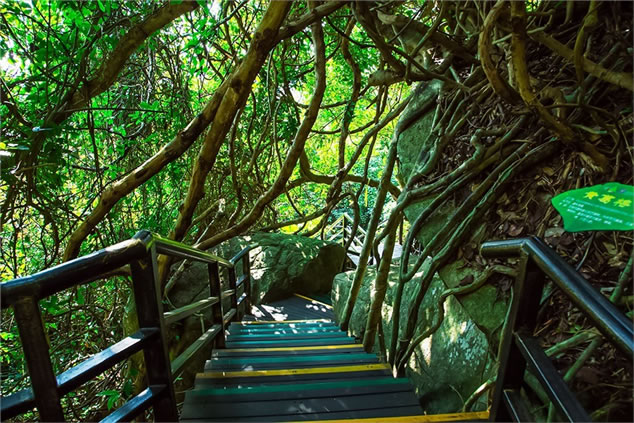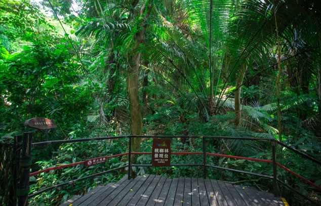雨林谷以展現(xiàn)原生態(tài)的熱帶雨林景觀為核心,匯集參天巨榕、百年古藤、黑桫欏、仙草靈芝、見血封喉、野生桄榔以及“高板根”“根抱石”“空中花園”“老莖結(jié)果”“植物絞殺”“藤本攀附”熱帶雨林的六大奇觀等。雨林谷是“天然氧吧”和負氧離子發(fā)生器,此地年平均溫度24度。雨林谷游覽通道由木棧道、野趣石階、吊橋組成,長達3.5千米,分為大、中、小三個環(huán)行線路。