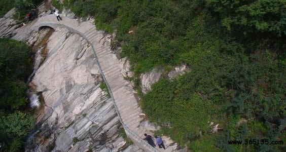 天生橋瀑布群,在阜平縣城西南30多公里處百草坨東側,分布著九個大瀑布,一座天然形成的橋梁,被專家鑒定為中國北方最大的瀑布群和由變質巖形成的中國最大的天生橋。瀑布群集中在與百草坨相連的一條溝谷中,最高的瑤臺瀑布落差112.5米。天生橋是由瀑流沿山谷裂隙沖蝕、崩塌形成的,長27米,寬13米,高13米,與流量最大、落差最高的瑤臺山銀河瀑布組合,形成了一個天然地質奇觀。盛水期飛流直下,如天馬奔騰,驚天動地;枯水期清流潺潺,聲韻清脆,宛如輕音樂協(xié)奏曲。冬季瀑布水凝,生成千千萬萬、大大小小、姿態(tài)各異的冰柱,猶如鬼斧神工造化的玉雕。