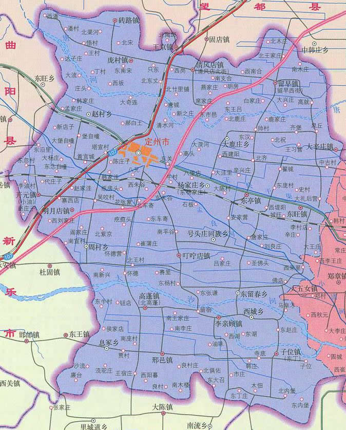 定州市轄3個(gè)街道、14個(gè)鎮(zhèn)、8個(gè)鄉(xiāng):