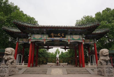西北角為玉蘭園,玉蘭園的入口處,立有一座“竊符救趙”的成語(yǔ)雕塑,表現(xiàn)如姬從魏王府中盜出兵符,交給平原君,調(diào)動(dòng)軍隊(duì)解救趙國(guó)的情景。
