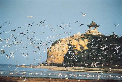鴿子窩一帶有礁石、濕地,樹木叢生,百草豐茂,是鳥類理想的棲息地,是著名的世界級觀鳥勝地。這里曾經(jīng)出現(xiàn)過多達(dá)14700多只的鳥群;一年之中,能見到四百多種鳥,占我國可見鳥類的40%。每年春秋季節(jié),國內(nèi)外的鳥類專家和愛好者在鴿子窩一帶觀鳥。1999年,在北戴河還舉辦了國際觀鳥大賽。鳥類是最有權(quán)威的自然環(huán)境鑒定師。鳥類選擇的棲息地,必定環(huán)境質(zhì)量最好。無怪乎有人在這里寫出這樣的詩句來:從來鳥兒最聰明,偏向好山好水停。能知善惡解人意,碧海翠峰白精靈。北戴河優(yōu)美的自然環(huán)境,是大自然的造化,也是當(dāng)?shù)鼐用袷朗来M力保護的結(jié)果。