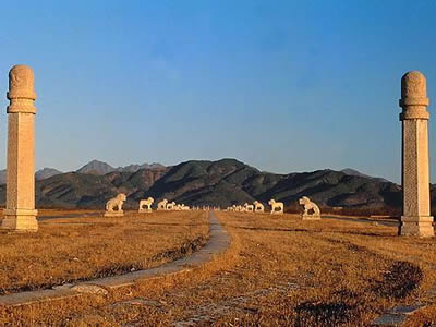 孝陵是清世祖愛(ài)新覺(jué)羅·福臨(順治皇帝)的陵寢,位于昌瑞山主峰南麓,背靠昌瑞山,前朝金星山,位居陵區(qū)主軸線上。后世四座帝陵依次分列左右,深刻體會(huì)了"居中為尊"、"長(zhǎng)幼有序"、"尊卑有別"的傳統(tǒng)觀念。