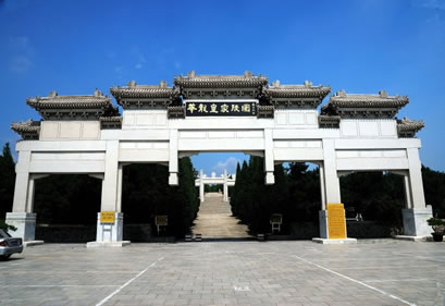 清崇陵位于泰陵的東南面約4公里的金龍峪,是我國現(xiàn)存帝陵中最后的一座。崇陵的建筑物數(shù)量與規(guī)模,完全依照同治的惠陵。建筑工巧,陵園儀樹中有罕見的羅漢松和銀松。地宮中合葬著光緒帝和隆裕皇后。