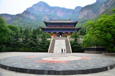 天桂山的青龍觀,原是為明朝末代崇禎皇帝修建的歸隱行宮。明朝末年,李自成起義嚴重動搖了明廷皇權。崇禎皇帝朱由儉在義軍紛起逼近北京的情況下,預感江山不穩(wěn),便密派心腹太監(jiān)林重萆出京選隱地修建行宮,以防不測。故所有的建筑既有皇宮之名,又有道教之稱,是中國唯一政教合一的古建筑群。清初一百年間,青龍觀屢有增設和修葺,擁有大小建筑十二處之多。其中真武殿、蒼巖殿和大光明殿共為青龍觀的三大建筑。在這座集皇家園林、道教宮觀和大自然秀麗景觀于一體的風景名勝區(qū)內(nèi),青龍觀的龐大建筑群,依山就勢,隨崖而建,真可謂陡崖鑲金,絕壁嵌珠,巧奪天工。天桂山既有雄秀交融的天然風光,又有皇家園林的高貴氣韻和道家仙山的莊嚴氣勢及神秘色彩,俗有“皇家道院”之稱,“北方桂林”之譽