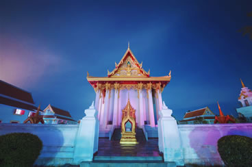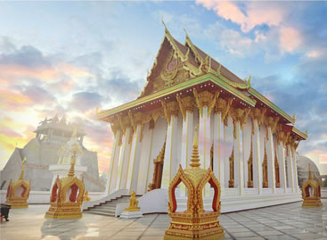 泰國佛殿苑位于洛陽白馬寺古建區(qū)西側(cè),長寬各108米,有四座苑門,東西南北各一座,其中東門為正門。苑內(nèi)的主要建筑有舍利塔、四面佛、大佛殿、博物館、流通處、鐘鼓樓、涼亭等,建筑錯落有致、張弛有度。舍利塔二層供奉有釋迦牟尼佛舍利。泰國佛殿苑的建成,是中泰兩國友好和文化交流的見證和象征。