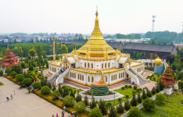 印度佛殿苑方正嚴謹,中心是一個巨大的覆缽式穹窿頂,佛殿下水流往來,噴涌不斷;佛殿外回廊環(huán)繞,靜謐整齊。一座具有印度古典風格的佛教建筑,與中國傳統(tǒng)的佛教寺院并立,她是中印兩國人民世代友好的象征。