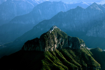 道教素有“南有金頂在武當(dāng),北有鐵頂在太行”之說,其中的鐵頂就是老爺頂。老爺頂海拔1570米的云際孤峰之上,峰頂“玄天上帝”大殿等建筑群全石無梁,八封窿頂,鐵瓦覆頂,還有鐵鑄的玄武神像、鐵鼎、鐵鍋等等,一切都以“鐵”聞名著稱,被譽為“天下第一鐵頂”。