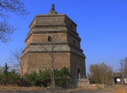 繁塔位于開封古城東南隅,建于北宋開寶七年。繁塔為六角九層空心樓閣式、仿木結(jié)構(gòu)的磚塔,原高80米,明永樂年間,將三層以上拆除,后在三層上建六層尖頂,形成了現(xiàn)今下粗上尖的塔姿。繁塔是研究我國建筑、美術(shù)和音樂的寶貴資料。