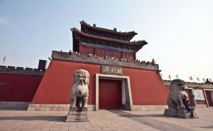 山陜甘會館位于河南省開封市龍亭區(qū)徐府街北側(cè),建于清乾隆四十一年(1776年),由居住在開封的山西、陜西、甘肅三省的富商巨賈在明代開國元勛中山王徐達(dá)的府址上聚資修建而成,是清代山西、陜西、甘肅三省旅汴客商經(jīng)商、貿(mào)易、聯(lián)絡(luò)同鄉(xiāng)感情的場所,已有200多年歷史。會館為四合院式布局,面積達(dá)3870.29平方米,主體建筑置于中軸線上,由南向北依次為照壁、戲樓、牌樓、正殿,附屬建筑位于東西兩側(cè),包含有左右掖門、垂花門、鐘樓、鼓樓、廂房、東西跨院等。