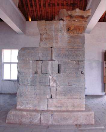 觀星臺南側(cè)的周公測景臺是古代祖先測量日影、驗證時令季節(jié)的儀器。分臺座和臺柱兩部分,臺座叫圭,臺柱叫表。夏至日這一天的正午,在測景臺的周圍看不到表的影子,所以,稱此臺為無影臺。又因為無影,我們的祖先就認為這里就是地中。