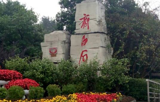 白石公園是紀(jì)念性的文化景觀。“人類的紀(jì)念情感通過客觀事物與歷史事件的關(guān)聯(lián)而獲得宣泄”。湘潭是齊白石的故鄉(xiāng),在這里修建齊白石紀(jì)念館和白石公園,一是為紀(jì)念這位讓湘潭人民永遠(yuǎn)驕傲的杰出藝術(shù)家,以表達(dá)人們的敬仰之情;更重要的是借此頌揚(yáng)齊白石的杰出成就和為中華民族乃至世界藝術(shù)和文化所作出的貢獻(xiàn),展示和弘揚(yáng)齊白石不朽的藝術(shù)和文化精神。因此,設(shè)計(jì)師在白石公園的景觀設(shè)計(jì)上主題鮮明突出,在設(shè)計(jì)元素的選擇、處理和景觀符號(hào)的設(shè)計(jì)上頗具匠心。整個(gè)公園從入口到中心再到邊緣,大師的詩、書、畫、印作品被自然地轉(zhuǎn)換成了耀眼的視覺元素和景觀符號(hào),而所有這些景觀符號(hào)都在向人們昭示著大師的不朽藝術(shù)和文化精神。這些設(shè)計(jì)元素和景觀符號(hào)在整體空間安排上,顯隱抑揚(yáng)自如、平和大度,既清晰地突出了齊白石的杰出藝術(shù)成就,又很好地抒寫出了這一特定景觀的文化主題。