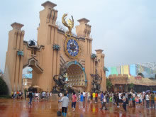 “迷獸天途”:這座龐大的平頂建筑也有石砌的不規(guī)則外墻,其內(nèi)部設(shè)計則緊扣樂園劍文化主題,充滿游戲魔幻色彩。集現(xiàn)場實景、立體電影、現(xiàn)場特技、動感平臺等先進技術(shù)于一體,綜合了巨幕、環(huán)幕4D電影、多自由度動感游覽車、現(xiàn)場特技等多項高科技游樂技術(shù)。
