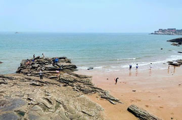 環(huán)繞連島的是湛藍的大海,穿行于青山林陰之下,舉首遠眺蒼茫大海,平日勞頓身心豁然舒暢,愉悅情懷由衷而生。在連島大沙灣、蘇馬灣各有一處天然海濱浴場,那里浪緩灘平,水清沙細,國際標準海水游泳水溫期長達80天,是踏浪戲海的理想之地。久居城市的人,在鋼筋和混凝土的叢林中,飽受喧囂之鬧俗欲之累,來到連島蘇馬灣,傾聽萬年如一的潮聲濤語,山海的永恒博大,讓郁積于胸的煩情愁緒頃刻間遁于無形,甚至將自我都融入了蒼茫的海天之中。
