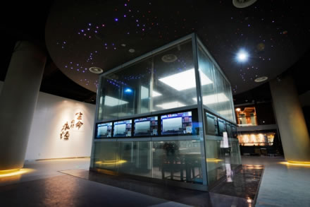 數(shù)字館位于民國館北側(cè)地下,由實(shí)體展館和網(wǎng)絡(luò)虛擬館構(gòu)成。實(shí)體館約1200平方米,用抽象概念輔以歷史事實(shí)的表現(xiàn)方式詮釋中華文明發(fā)展歷程,總體風(fēng)格時尚亮麗。突破“以展柜和展板為主”的傳統(tǒng)展陳方式,采取“不封死、不看穿”錯層交疊的空間構(gòu)建手段,集合分列式多屏幕、透明屏、二維碼等多媒體形式,運(yùn)用實(shí)時摳像、動作捕捉等數(shù)字技術(shù),將空間、裝飾、媒體硬件及數(shù)字內(nèi)容結(jié)合起來,營造立體豐富的展示環(huán)境,引導(dǎo)觀眾沿著流線移步換景。網(wǎng)絡(luò)虛擬館通過網(wǎng)絡(luò)和圖像識別技術(shù)復(fù)原實(shí)體展館的空間和內(nèi)容,是實(shí)體展館的延伸。以網(wǎng)絡(luò)為平臺,觀眾自己制作的展示內(nèi)容,通過遴選的,也可推送到實(shí)體展館。實(shí)體展館分為六大展區(qū),序廳:以《時光》為題,通過流水、風(fēng)沙、變幻的星空,體現(xiàn)“時間”對于人類文明的獨(dú)特作用,營造時間飛逝,萬物滄桑的情境感。萌動與發(fā)軔:用獨(dú)具風(fēng)格的影像勾勒出初生的人類試圖征服自然時表現(xiàn)出的勇氣與“傻氣”。進(jìn)取與成長:體現(xiàn)中華文明的快速發(fā)展。用歷史故事表現(xiàn)“熱血青年”、“因?yàn)閻矍椤、“君子愛財”、“意氣風(fēng)發(fā)”等人生路上的喜怒哀樂。擴(kuò)張與融合:用立面寬12.5m,高5.9m的C形巨幕影片,以戰(zhàn)爭、帝國故事表現(xiàn)人類進(jìn)步過程中的豪邁激越、堅(jiān)韌不拔以及全盛時期的聲色犬馬、宗教宣揚(yáng)。封閉與開放:截取閉關(guān)鎖國、鴉片戰(zhàn)爭、文明絲路中的歷史片段,表現(xiàn)中華文明從開拓進(jìn)取逐漸轉(zhuǎn)向內(nèi)斂、保守、固步自封的心態(tài)。生命因你永恒:總結(jié)在初生、發(fā)展、強(qiáng)盛、衰落這一螺旋式漸進(jìn)的歷史進(jìn)程中,文化和民族產(chǎn)生了融合,政治制度、科學(xué)技術(shù)和文化藝術(shù)也在不斷成熟、進(jìn)步,文明向更加美好和睿智的方向前進(jìn)。