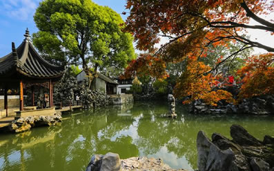 獅子林位于蘇州城內(nèi)東北部。因園內(nèi)石峰林立,多狀似獅子,故名“獅子林”。獅子林平面呈長方形,面積約15畝,林內(nèi)的湖石假山多且精美,建筑分布錯落有致,主要建筑有燕譽(yù)堂、見山樓、飛瀑亭、問梅閣等。